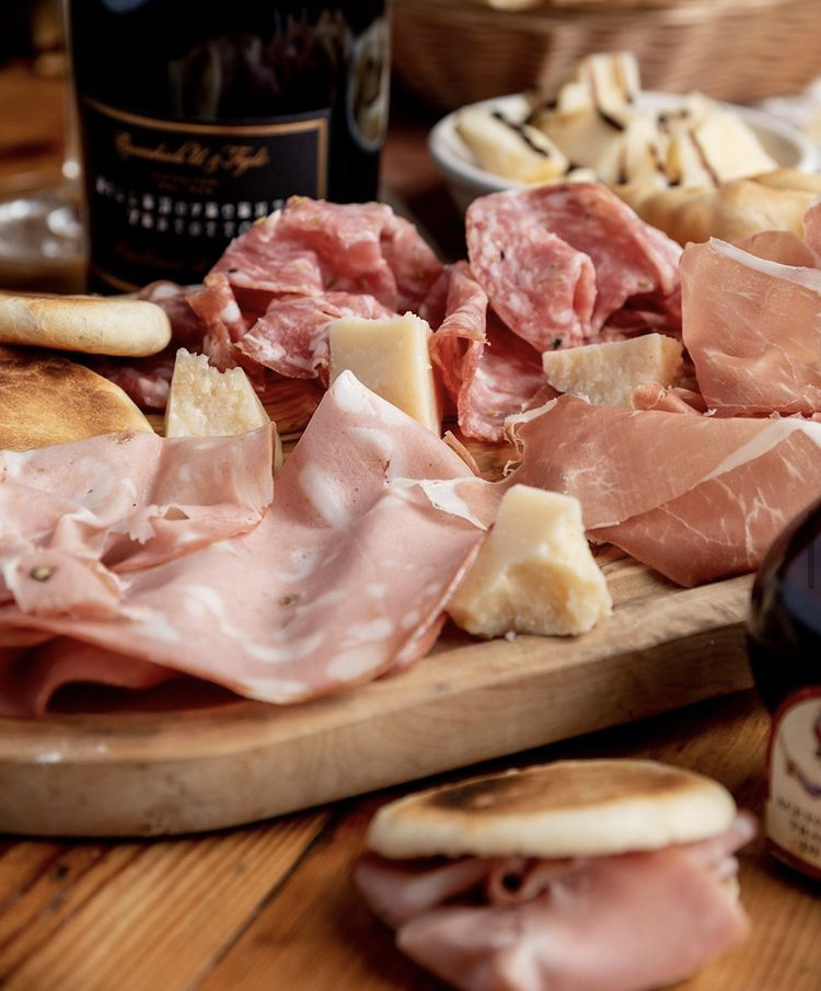Prosciutto Crudo di Parma, Mortadella, Capocollo, Bresaola della Valtellina, Ventricina piccante, Pecorino di grotta, Caciocavallo, Mozzarelline o Burratina, Caciottina al pepe.